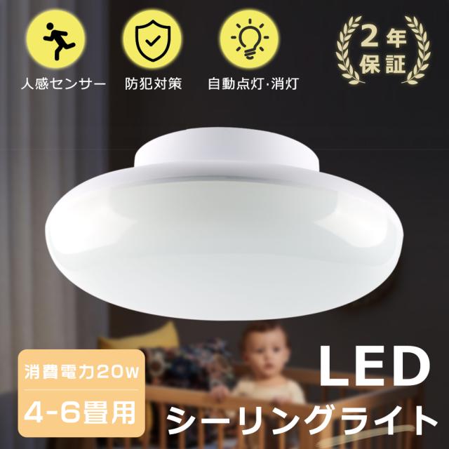 2年保証 LED 天井照明 シーリングライト 20W 白色4000k 照明 LED電球 ライト おしゃれ 小型 薄型 天井 LED シーリングライト 4畳 6畳 丸型 キッチン 玄関 洗面所 北欧 ルームライト 虫対策 防犯対策 人感センサー 感知範囲5m 感知角度180°