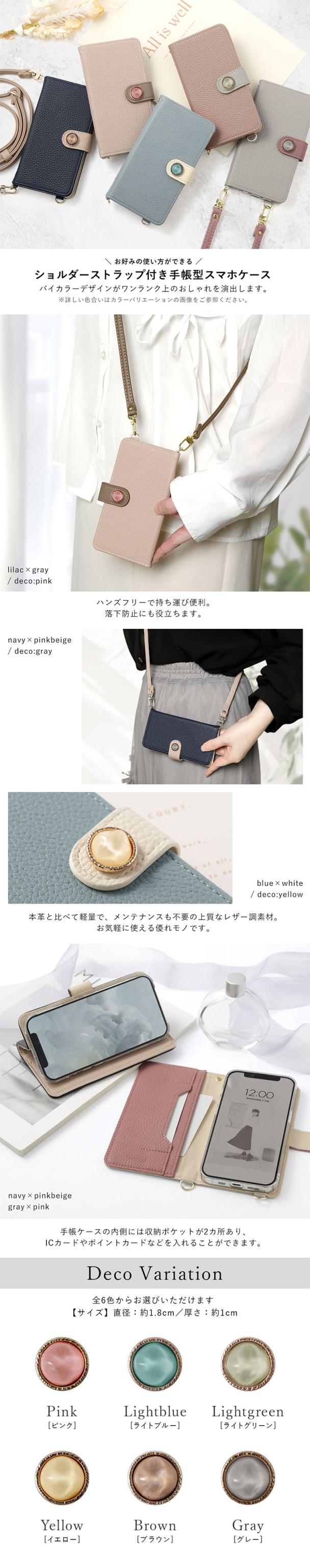 ショルダータイプの手帳型ケース全5色×ワンポイントデコ6色