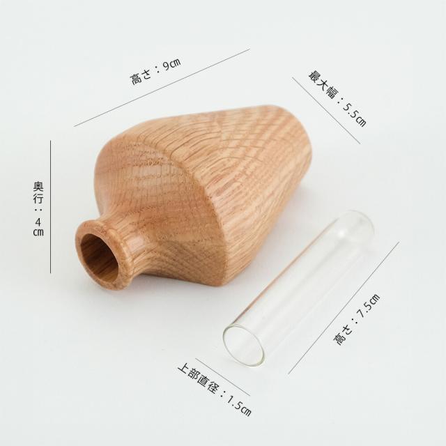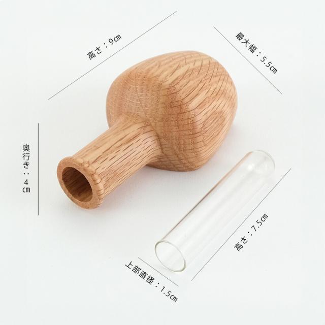 本体は木目が美しい天然のオークウッドを使用していますので、付属の試験管(ガラス)を本体に入れてお使いください。