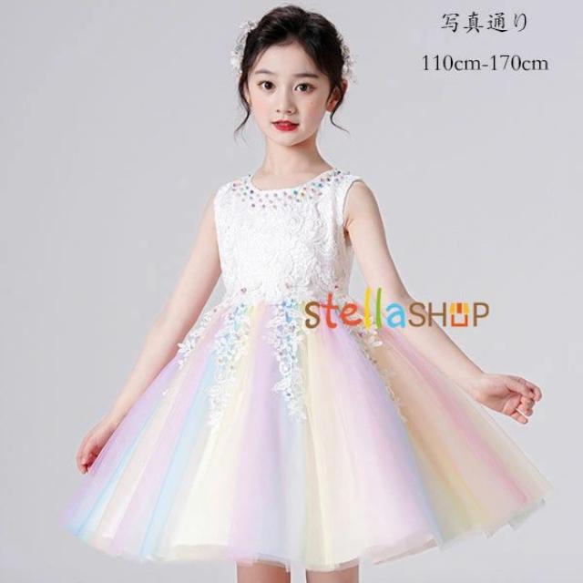 結婚式ドレス フォーマルドレス 発表会ドレス 虹色 女の子 ドレス ピアノ演奏 ドレス 子供ドレス お誕生会 呼ばれ ドレス プリンセス ドレス 演奏会 音楽会 ドレス キッズ ドレス 膝丈上 スウィート ドレス 撮影写真 パーティー 110cm 120cm 130cm 140cm 150cm 160cm 170cm