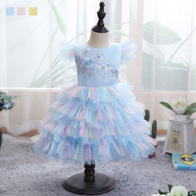 子供ドレス 新作 花柄 ティアードスカート 可愛い 赤ちゃん 女の子 ベビードレス フォーマル 記念撮影 出産祝い 入園式 卒園式 発表会 ドレス 演出 七五三 結婚式 ドレス お宮参りに キッズ 幼児 ドレス ブルー ピンク イエロー 0-4歳 子供服 ドレス フォーマル ワンピース