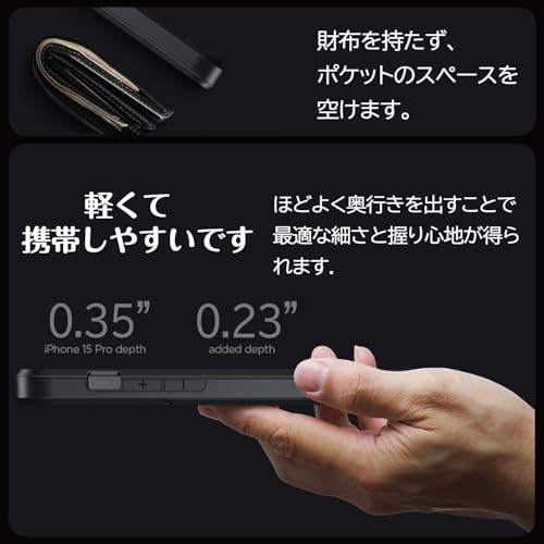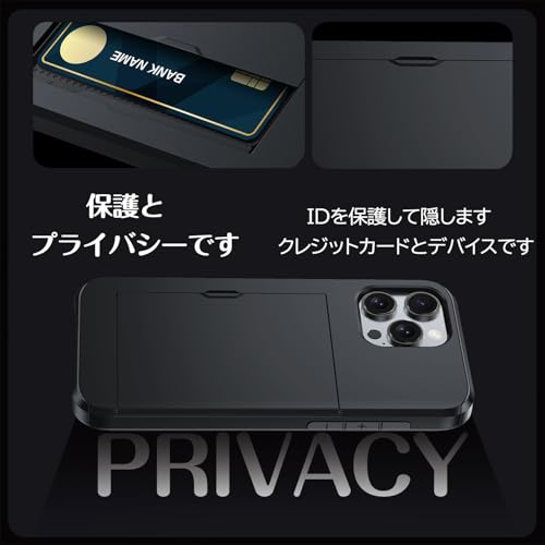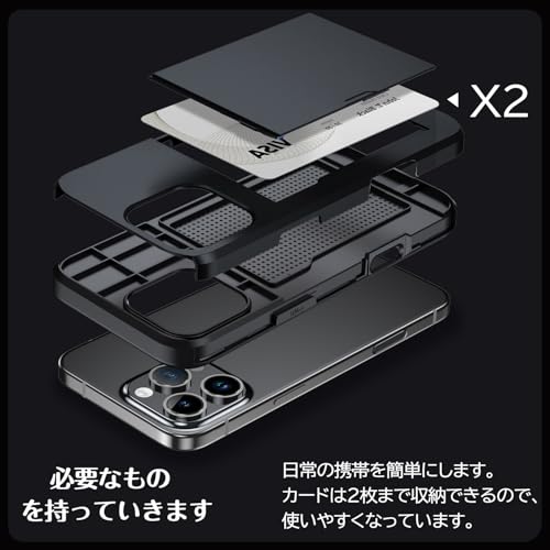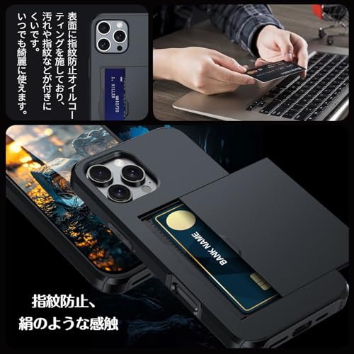 iPhone 16 Pro ケース カード収納 背面 耐衝撃最強 16 Pro ケース ICカード収納 落下防止 全面保護 指紋防止 滑り止め 擦り傷防止 ブラック
