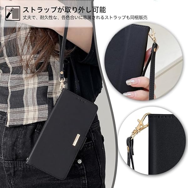 Xperia 10 VI SO 52E ケース 手帳型 Xperia 10 6 ストラップケース Xperia10 VI SOG14 A402SO XQ ES44 au docomo SoftBank SIMフリー 楽天モバイル 全対応 ソニー エクスぺリア10 VI SO52E カバー ケース 適用 case ストラップ ストラップ付き スマホケース ブラック