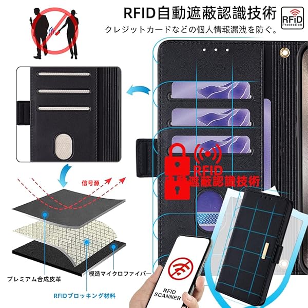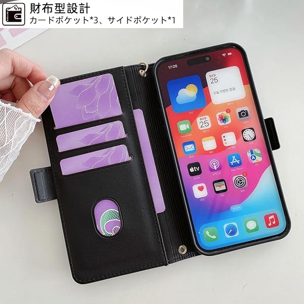 【機能性4:カード収納と安全保護】窓口式のカードスロットとサイドポケットも装備しております。ちょっとした外出する際に、財布が無くても手帳型ケースだけで十分です。内蔵マグネットの留め具なのでピタッと閉まります