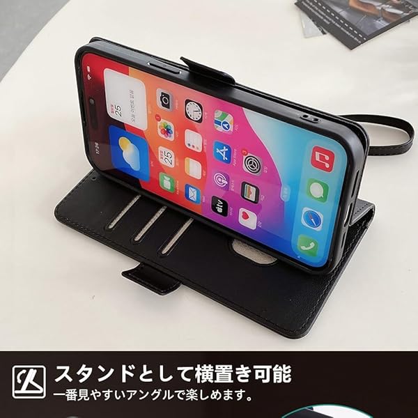 【機能性3:スタンド機能付き】2つ折りの折り目を設置しておきます。横に置いてスタンドとしてご利用ができます。横向いて斜めに立てて両手を解放し、お気軽に読書やビデオのお視聴を楽しめます。スマホケースには機能性と実用性は大切です。