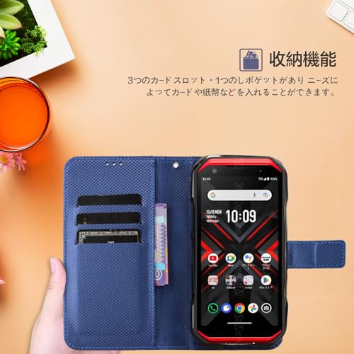 京セラ DuraForce EX KY 51D ケース 手帳型 財布型カバー スマホケース カード収納 スタンド機能 マグネット開閉 耐衝撃 レンズ保護 合皮レザーー + TPUケース 革の質感 画面レンズ保護 落下防止 全面保護カバー 指紋防止 京セラ DuraForce EX KY 51D 対応 (ブルー)