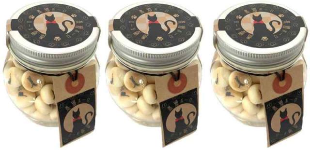 レトロでモダンな10種類のかわいい黒猫イラストが、ボーロにひとつぶひとつぶ描かれたとっても可愛いたまごボーロです。