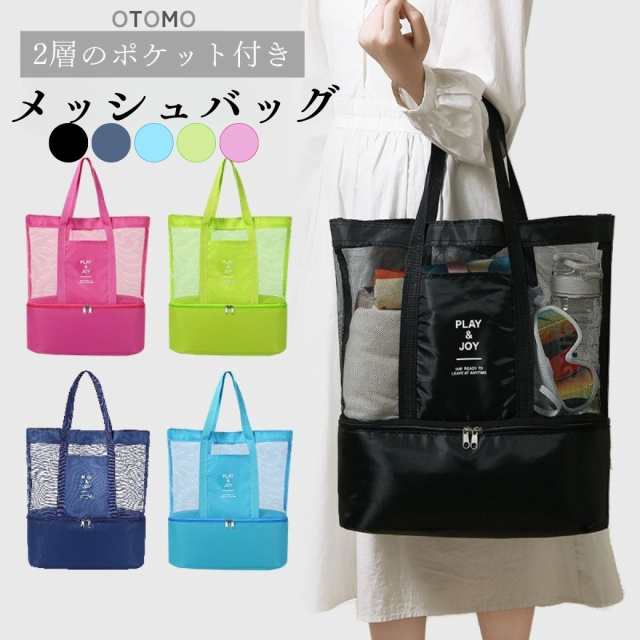 ジムバッグ シューズ収納 トートバッグ ナイロン メッシュバッグ 温泉 サウナ 水泳 トートバッグ 大容量 おしゃれ 保冷バック スポーツバッグ OTOMO 送料無料 海水浴 砂浜 砂場 メンズ レディース ボクシング シューズ収納付き 軽い 軽量 大きい 大きめ ベビーカー ダイビング 黒 青 緑