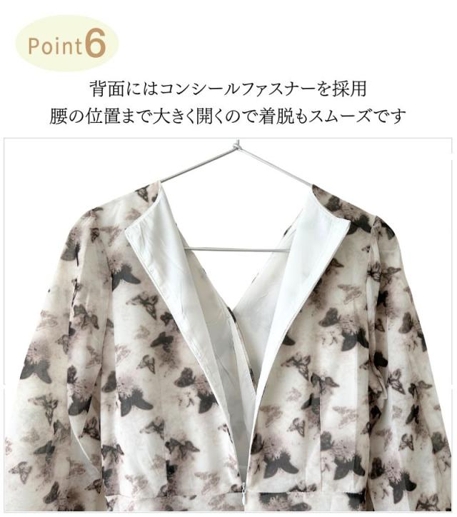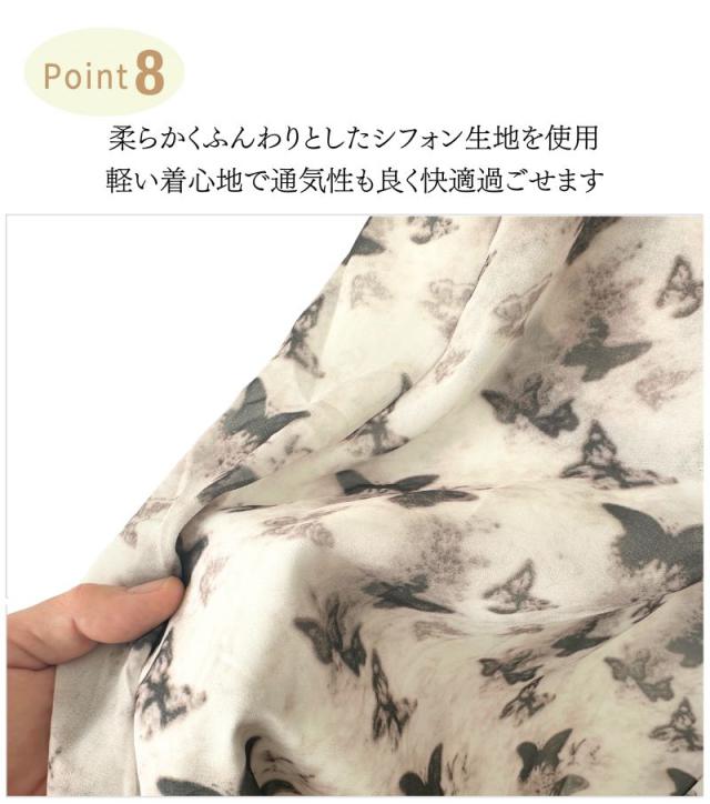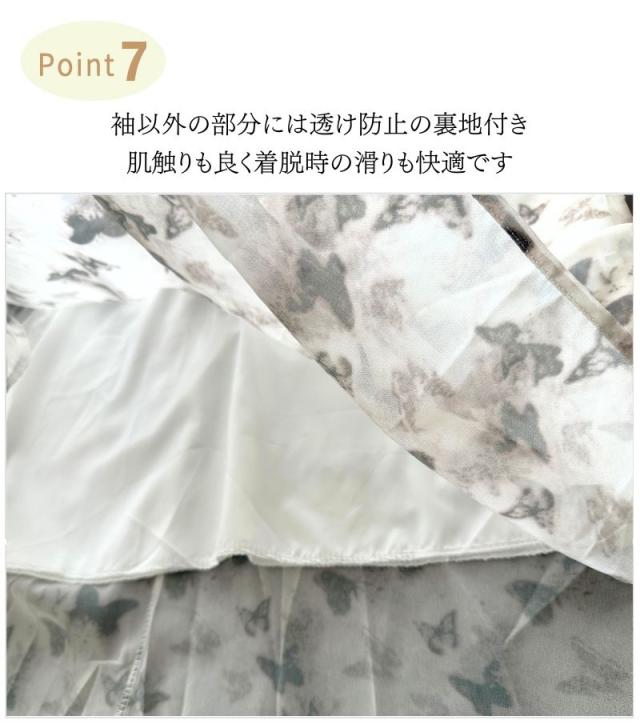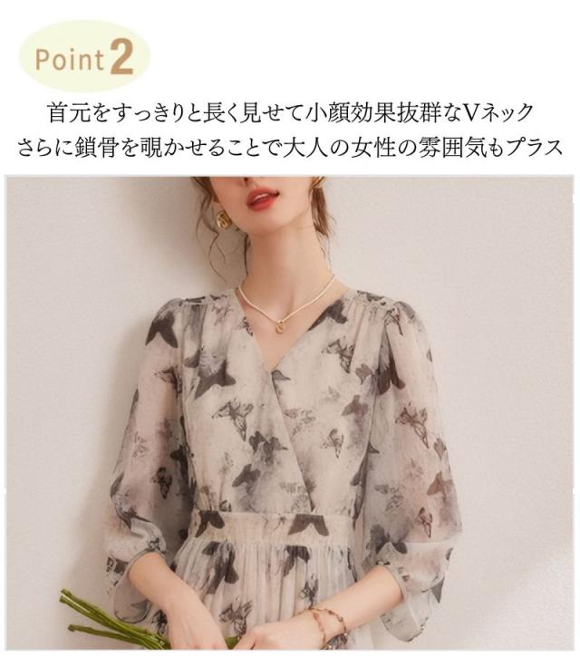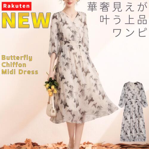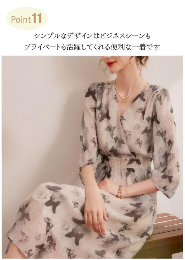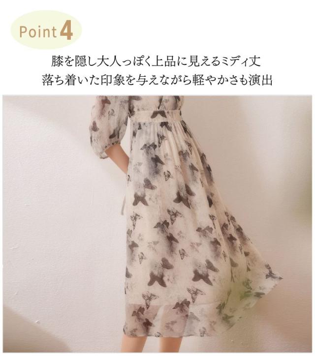 バタフライ 柄 シフォン ワンピース Aライン レディース シースルー 七部 袖 シャツ フェミニン 春 夏 膝 ミディ ミモレ 丈 リラックス きれいめ スカート 白 ホワイト ワンピ カジュアル 涼しい 薄手 体型カバー 大人 ぽっちゃり 可愛い おしゃれ おすすめ 人気 通販