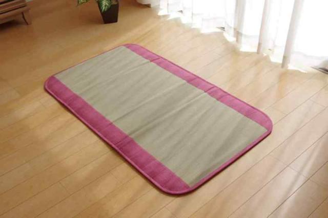 純国産 い草ごろ寝マット 『さわやか R縁Jrマット』 ピンク 約70×120cm(中:固わた15mm) 7514359