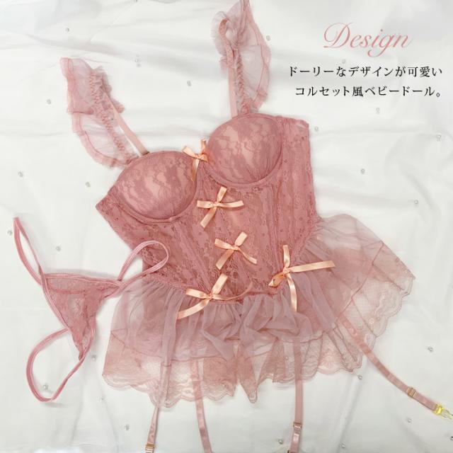 カップつきコルセットベビードール(Tバックショーツつき)