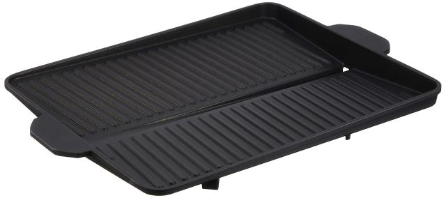 ●角型 焼肉グリル ●お肉の余分な油を落とす溝付プレート! (油を溜めないことで野菜を焼く時に油の飛び散りを抑えます) ●集めた油はプレートの外へ流れる設計! ●表面は焦げ付きにくいフッ素樹脂加工! ●カセットコンロに合わせた省スペース設計! ●サムギョプサルに最適な焼肉プレート! サムギョプサルサム=数字の3、ギョプ=層、サル=肉 韓国でポピュラーな豚バラ肉の焼肉料理。 ●豚肉をカリカリに焼き、ナムル、キムチ、白髪ネギと一緒にチシャバに包んで味噌ダレやごま油をつけて食べる料理です。 ●油の多い豚バラ肉の油を落とし、野菜と一緒に食べられるので、 よりヘルシーです!