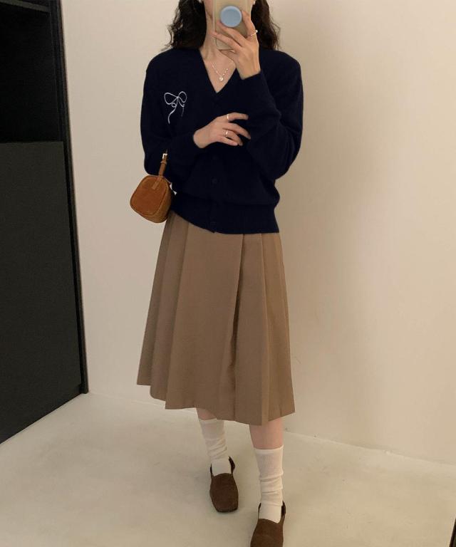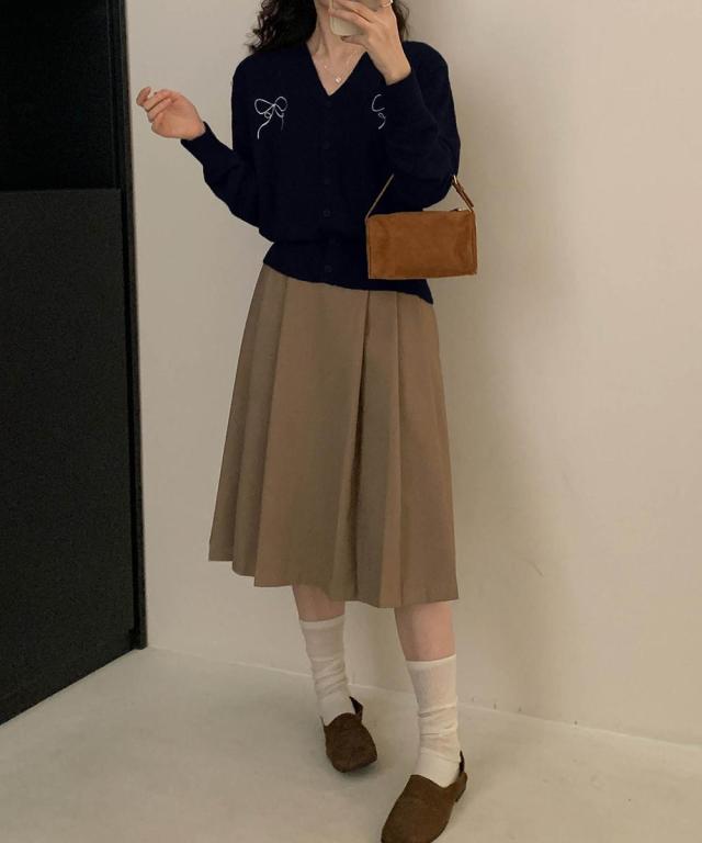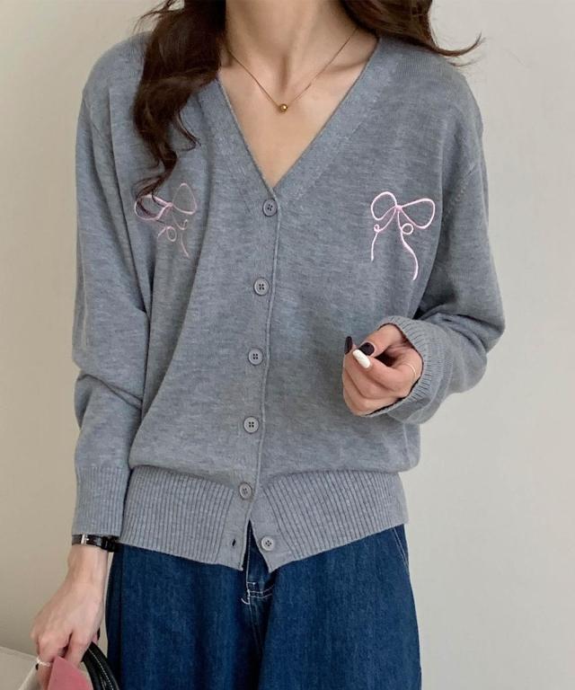 【aimoha】リボン刺繍Vネックニットカーディガン