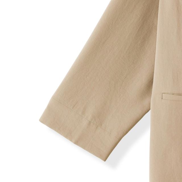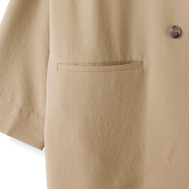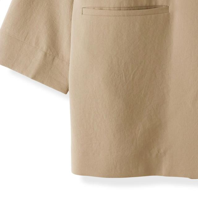 やや短めの袖丈と夏にふさわしい機能付きで、これからの時期も重宝する一枚です。