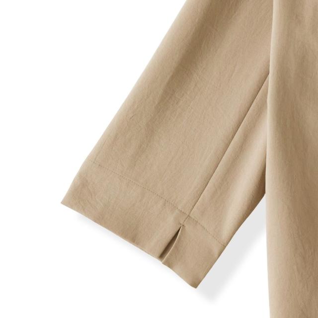 やや短めの袖丈と夏にふさわしい機能付きで、これからの時期も重宝する一枚です。
