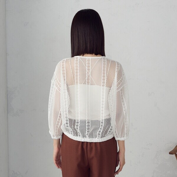 レースのシアー感を活かした一枚仕立てで、軽い印象に仕上げています。