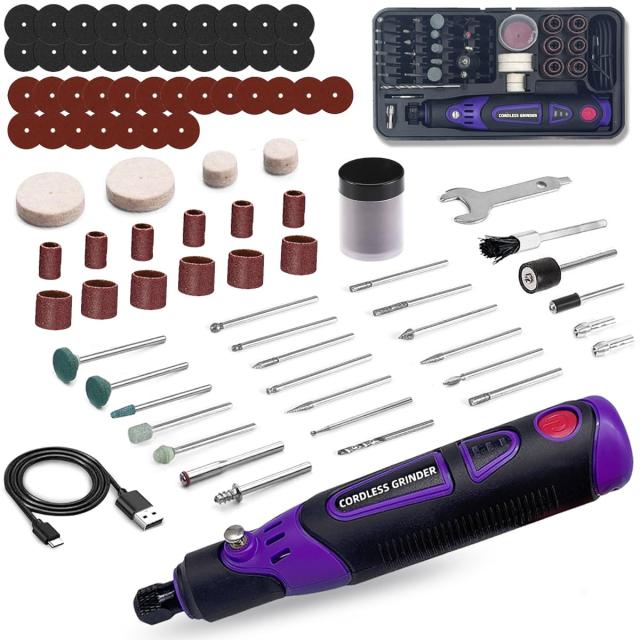 ミニルーター 86pcs コンパクトルーター 3.6V 三段階変速 17000RPM高速回転 リューター USB充電式 コードレス 電動ルーター 研磨/彫刻/つ