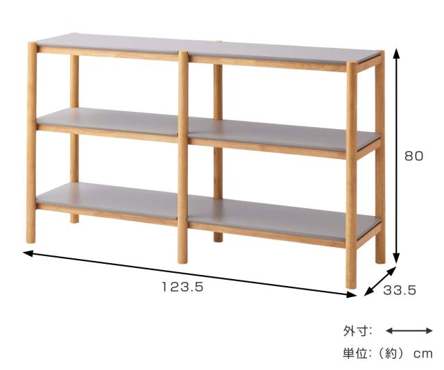 オープンシェルフ 幅123.5cm ナチュラルグレー 簡単組立 ( シェルフ ラック 棚 飾り棚 収納 ディスプレイ 3段 本棚 組み立て簡単 ナチュラル グレー 天然木 )