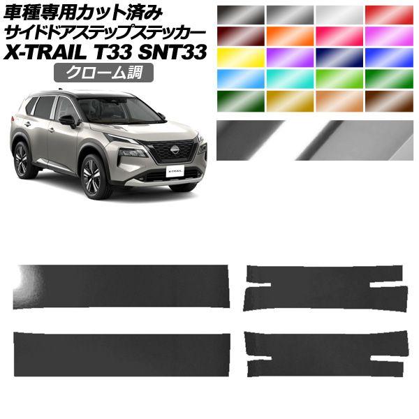 サイドドアステップステッカー 日産 エクストレイル T33系 2022年07月〜 クローム調 選べる20カラー 入数:1セット(4枚) AP-PF2CRM0262