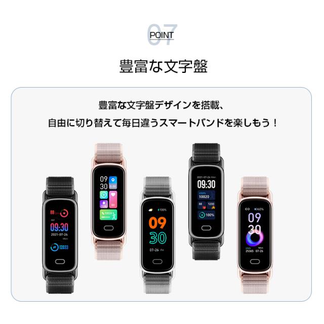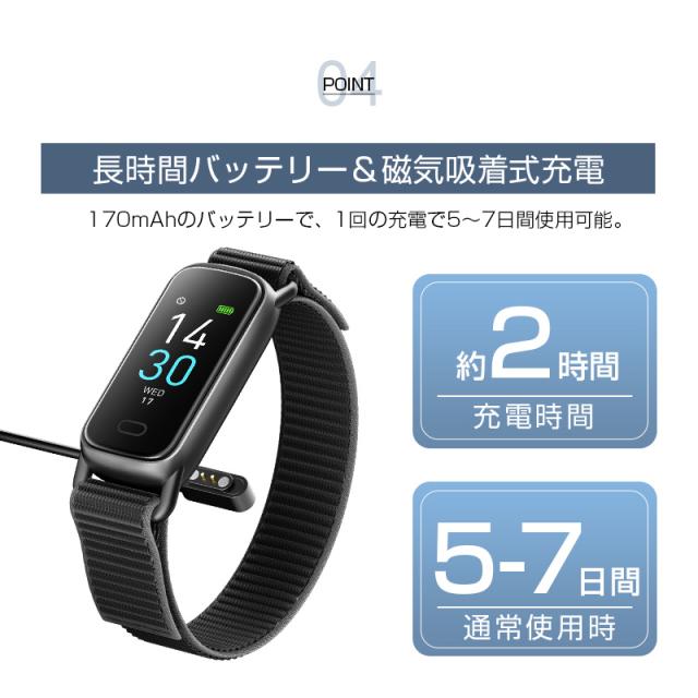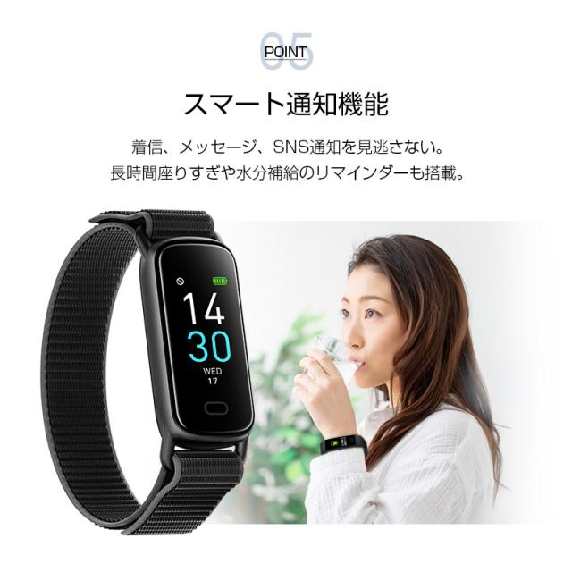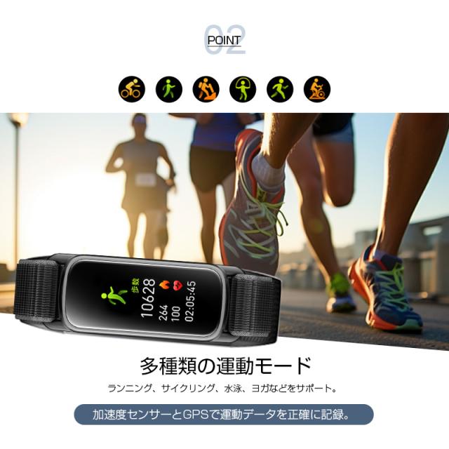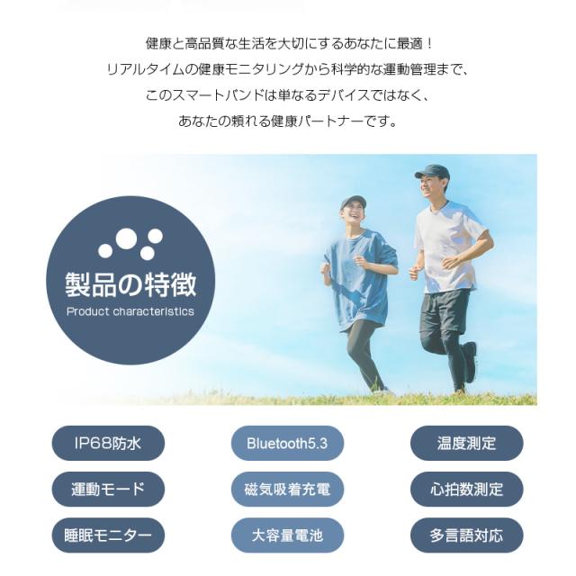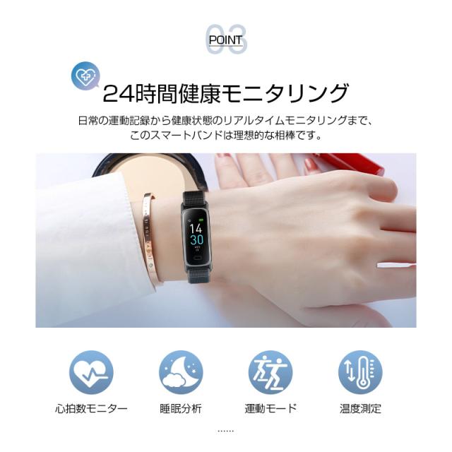 本製品は、心拍数測定や睡眠管理、情緒モニタリングなど、健康をトータルでサポートします。リストバンド型のデザインで、腕にぴったりフィットし、毎日着けているだけで、体調の変化をリアルタイムでチェックできます。また、歩数計機能とカロリー消費計算で、運動量を把握し、エクササイズの目標を達成する手助けになります。