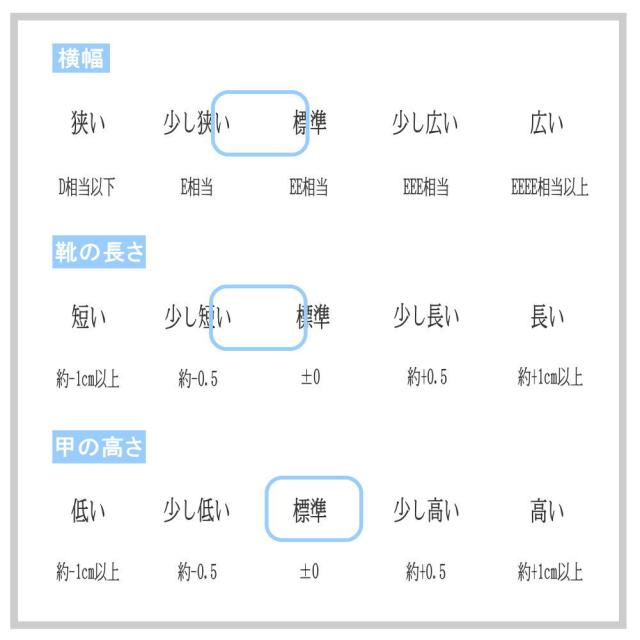 男女兼用の22.5cmから28.0cmまでのサイズレンジ。