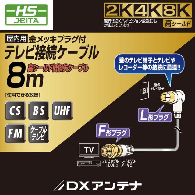 【DXアンテナ テレビアンテナケーブル 8m F字プラグ/L字プラグ ホワイトの商品詳細】