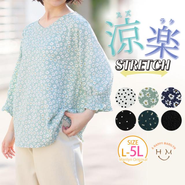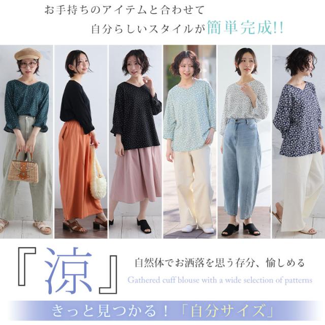 新作 大きいサイズ レディース ブラウス | さらっと着られる! 豊富な柄から選べる 袖口ギャザー ブラウス [502017] LL 3L 4L 5L
