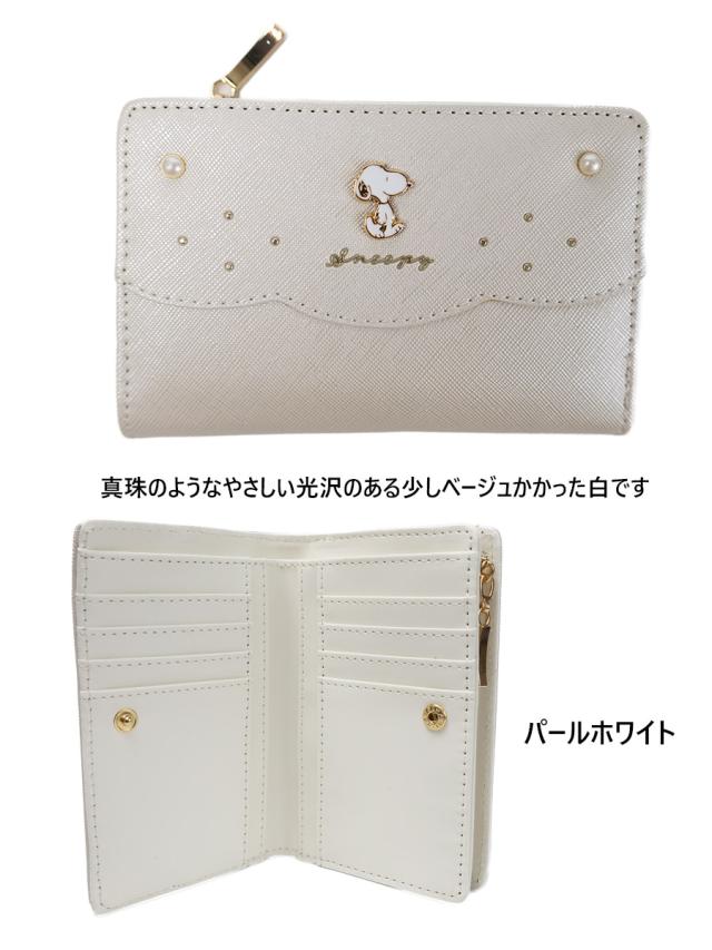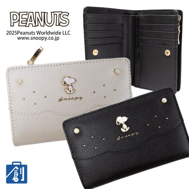 二つ折り財布 レディース L字ファスナー 小銭入れ 2つ折り財布 二つ折財布 子供 女の子 小学生 中学生 高校生 ミドルウォレット 二つ折り財布レディース 財布 レディース 二つ折り キャラクター スヌーピー パール 深札入れ SNP1283