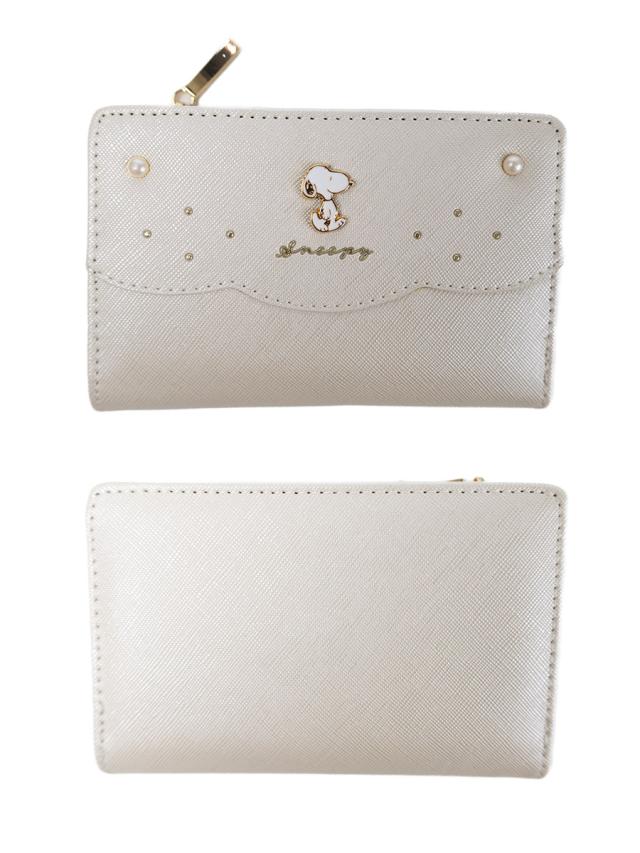 ■パールやスタッズが散りばめられたスカラップが可愛いスヌーピーのお財布シリーズです。控えめな可愛さで小中学生から大人まで幅広くお使いいただけます