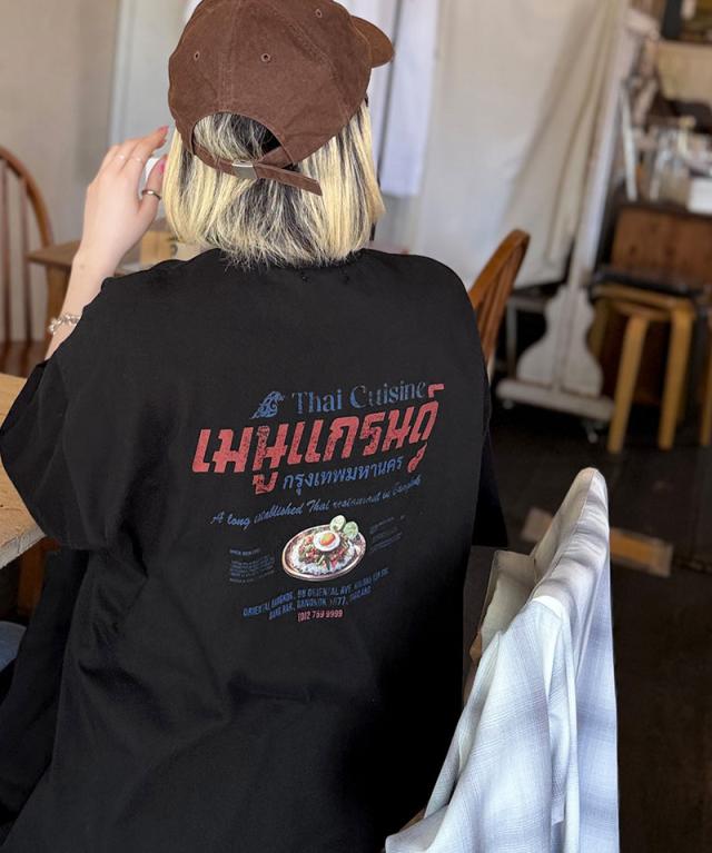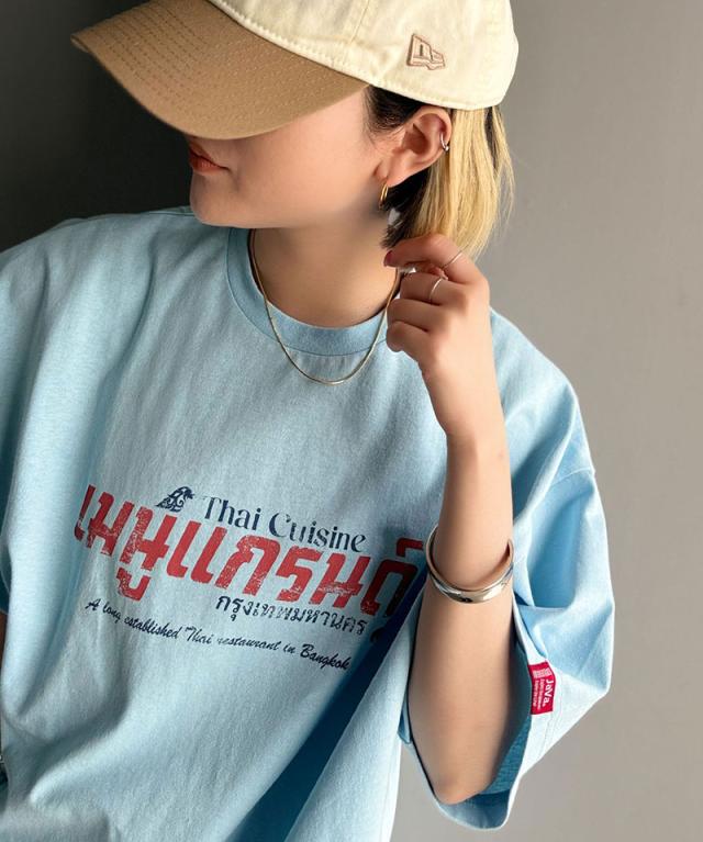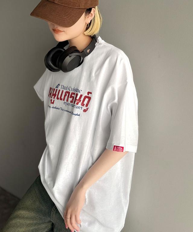 クラシカルエルフ秋新作 javaジャバ コラボ トップス Tシャツ メンズ タイニーズ レストラン風 プリント 半袖T 男女兼用 ユニセックス レディース ルーズ 綿100% タイ料理 グラフィック ラフ ベーシック 天竺生地 大きいサイズ 2025ss jm1029127