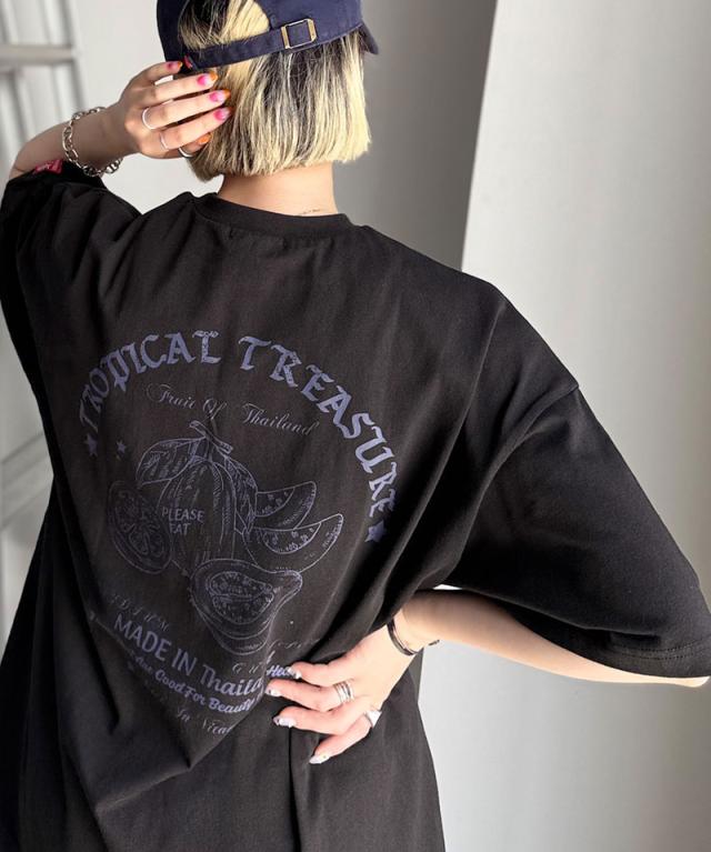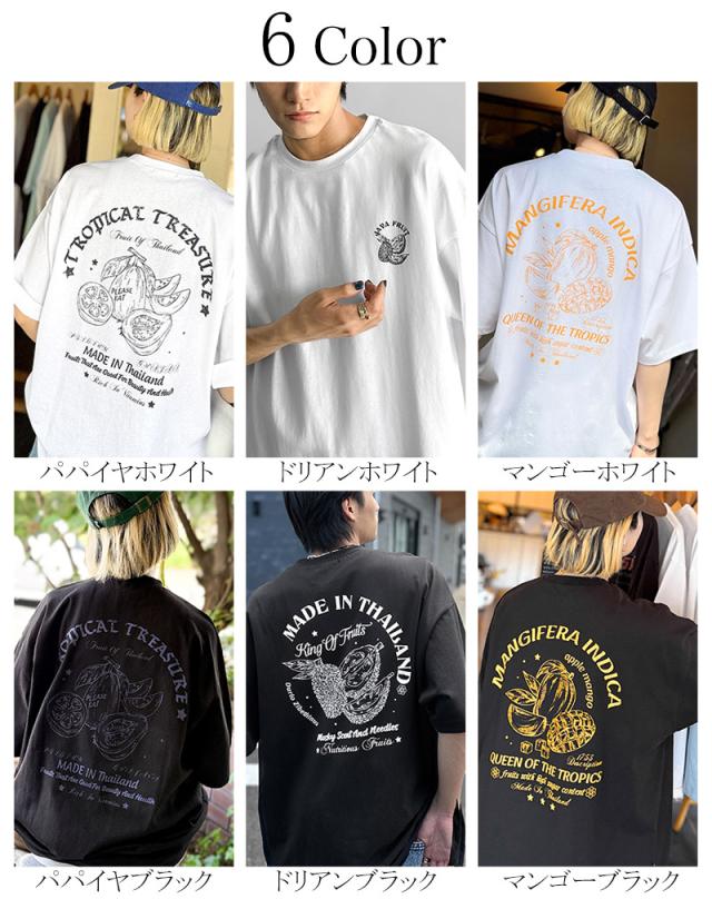 ★《JaVaジャバコラボ》周りと差がつくアート感。綿100% タイ☆トロピカルフルーツ柄☆ビッグTシャツ★