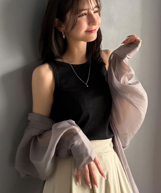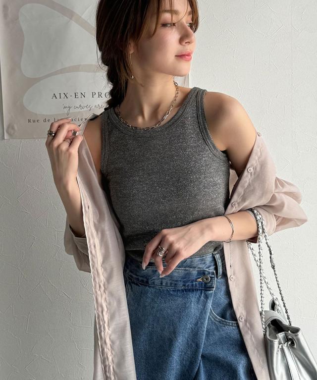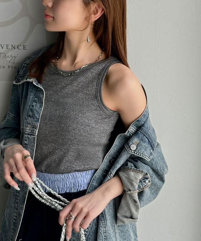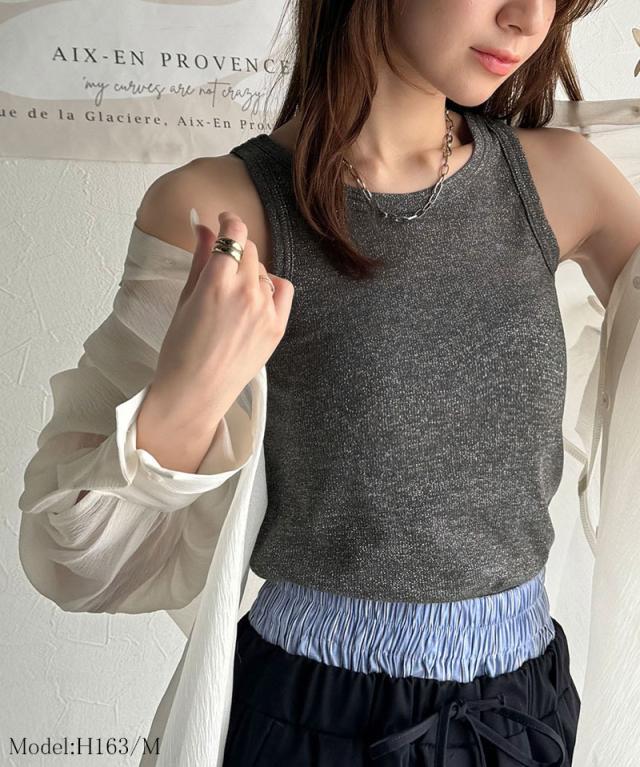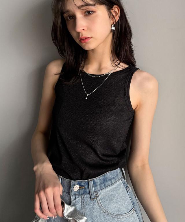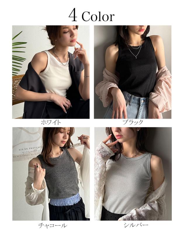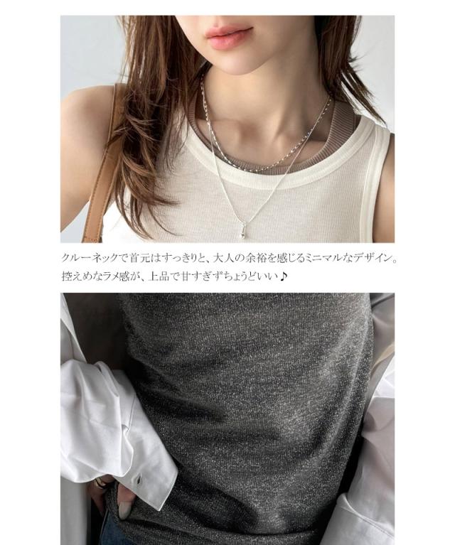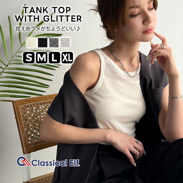 クラシカルエルフ秋新作 トップス タンクトップ レディース ラメ入り アメリカンスリーブ 大人フェミニン 抜け感 お洒落 アメスリデザイン クルーネック 華奢見え レイヤード シーズンレス 上品 万能タンク インナー 大きいサイズ 2025ss ce1110123