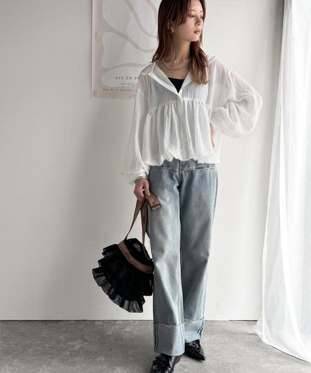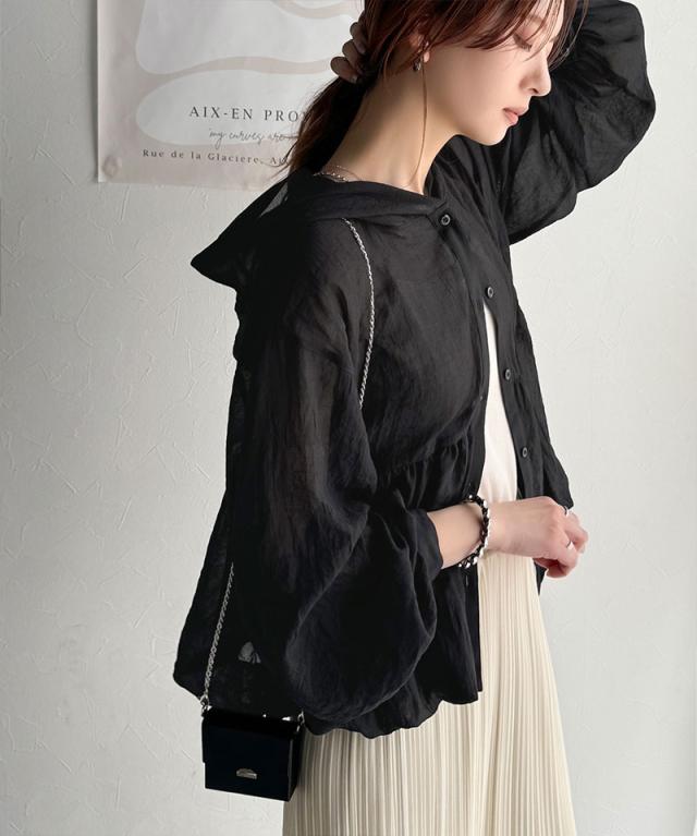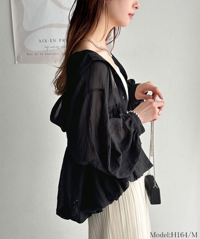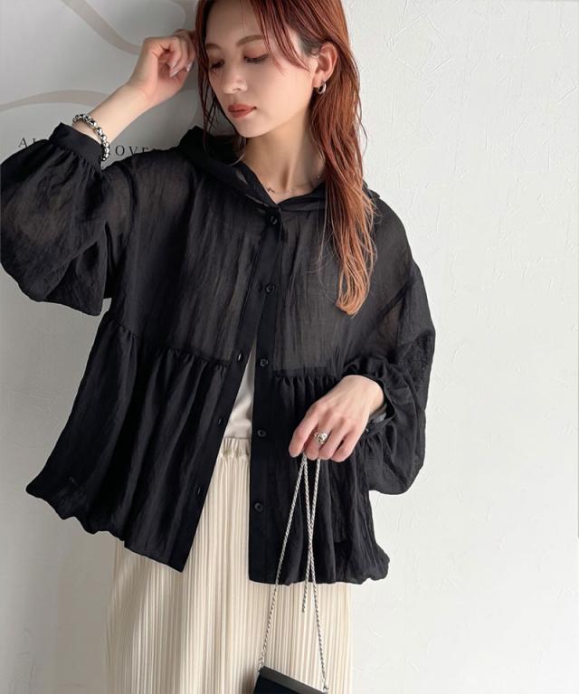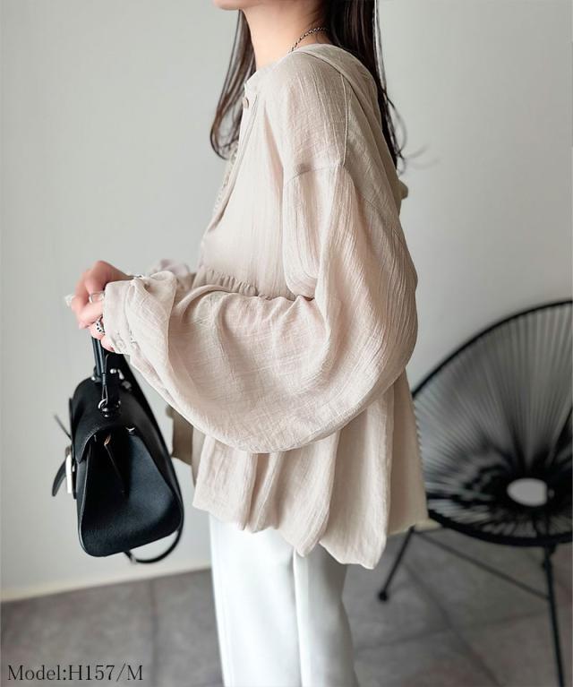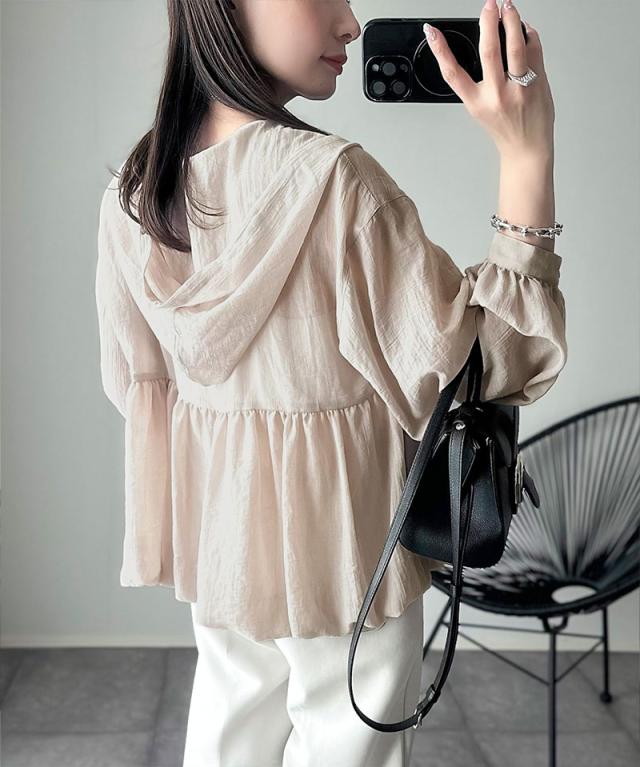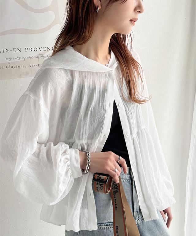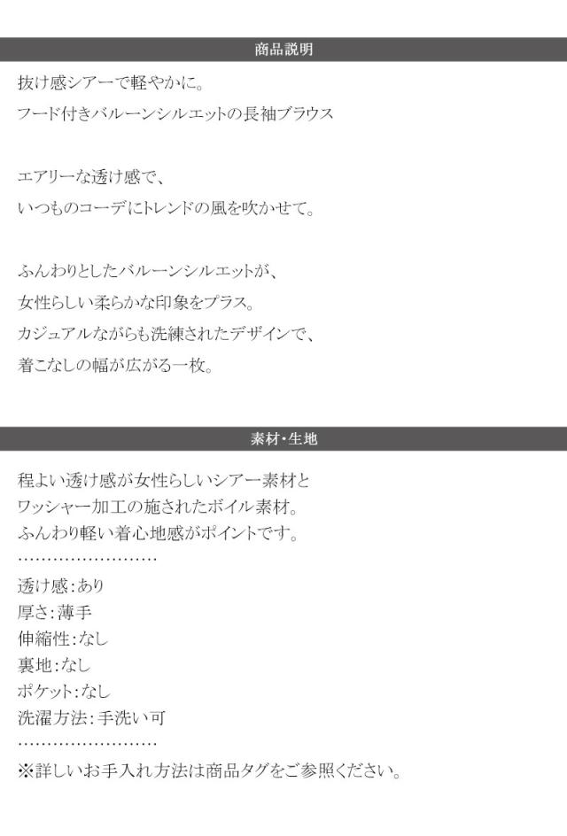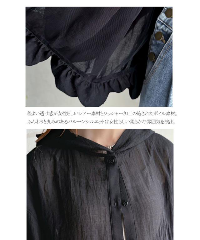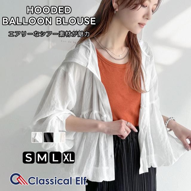 クラシカルエルフ秋新作 トップス シャツ レディース フード付き ふんわり バルーン シルエット 長袖 ブラウス ワッシャー加工 ボイル生地 ゆるっと オーバーサイズ 大きいサイズ 2025ss ce1010440