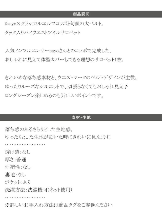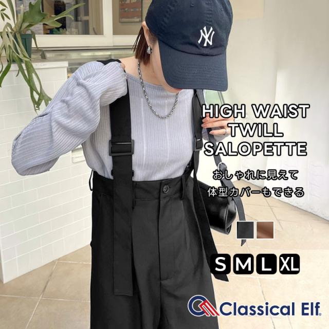 クラシカルエルフ秋新作 sayo×クラシカルエルフコラボ オールインワン サロペット レディース 太ベルト タック入り ハイウエスト ツイル サロペ ゆるっと オーバーサイズ 大きいサイズ 2025ss ce1010451