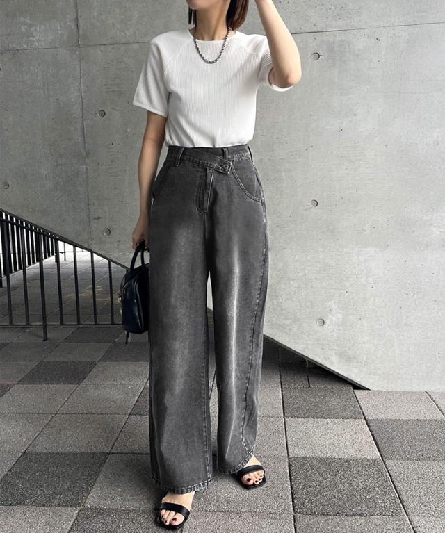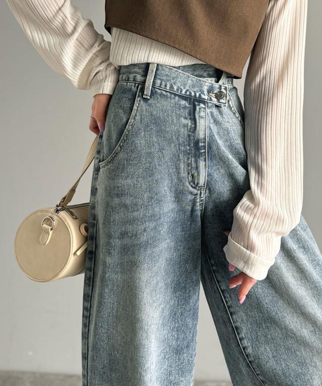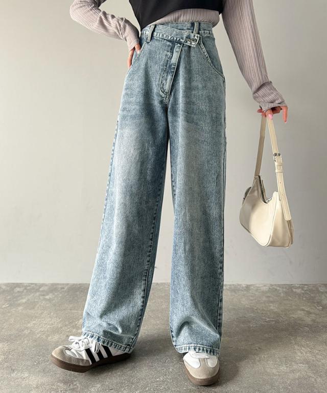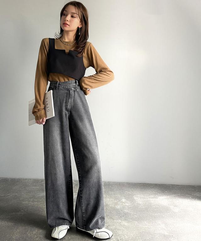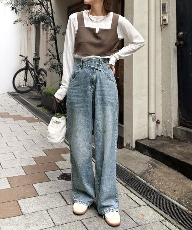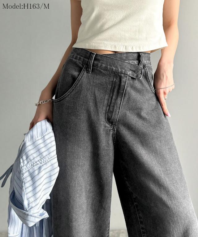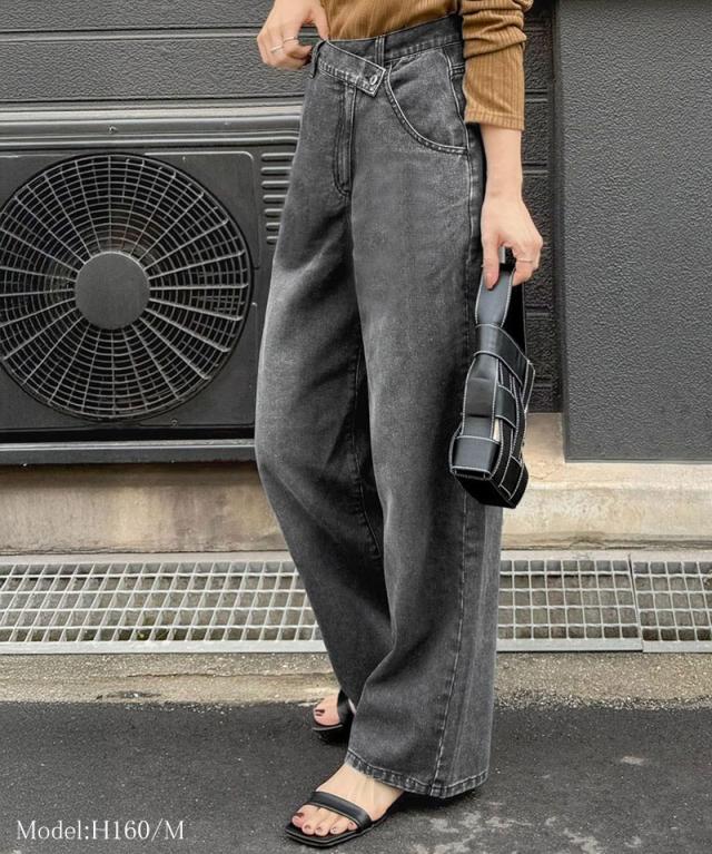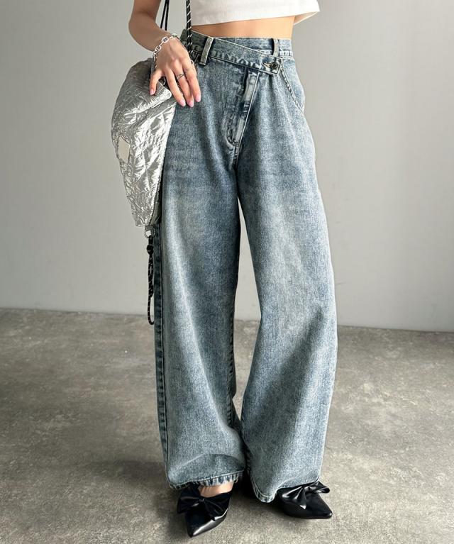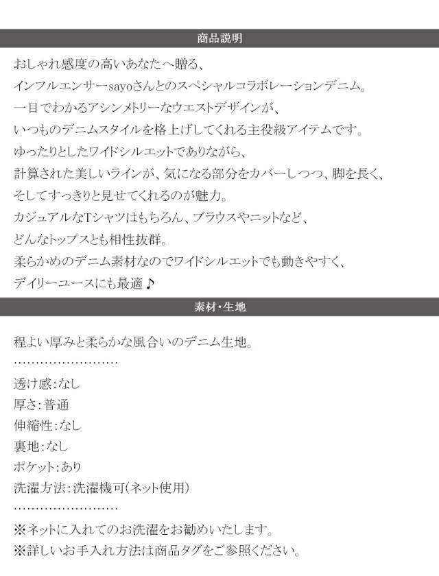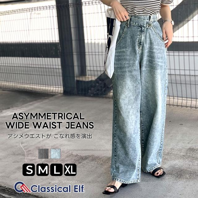 クラシカルエルフ春新作 sayo×クラシカルエルフコラボ ボトムス パンツ レディース アシメウエスト ワイドデニム ワイドパンツ ワイドシルエット アシンメトリー ゆったり こなれ感 スタイルアップ カジュアル 大きいサイズ 2026ss ce1015080