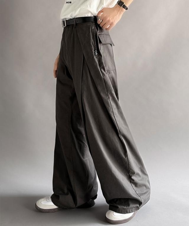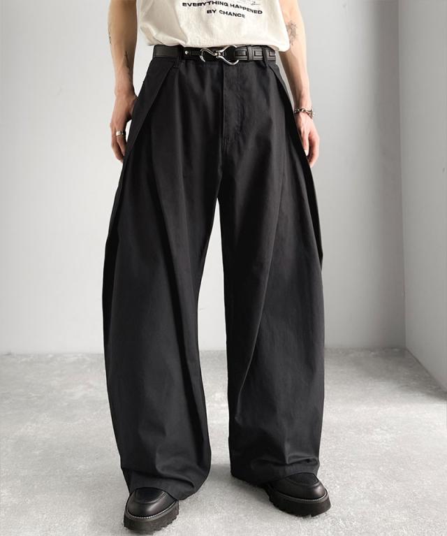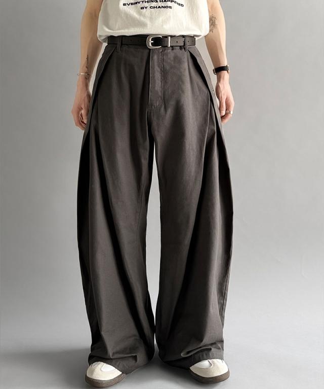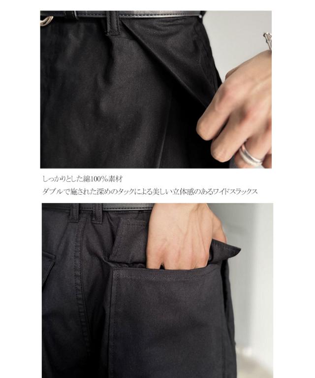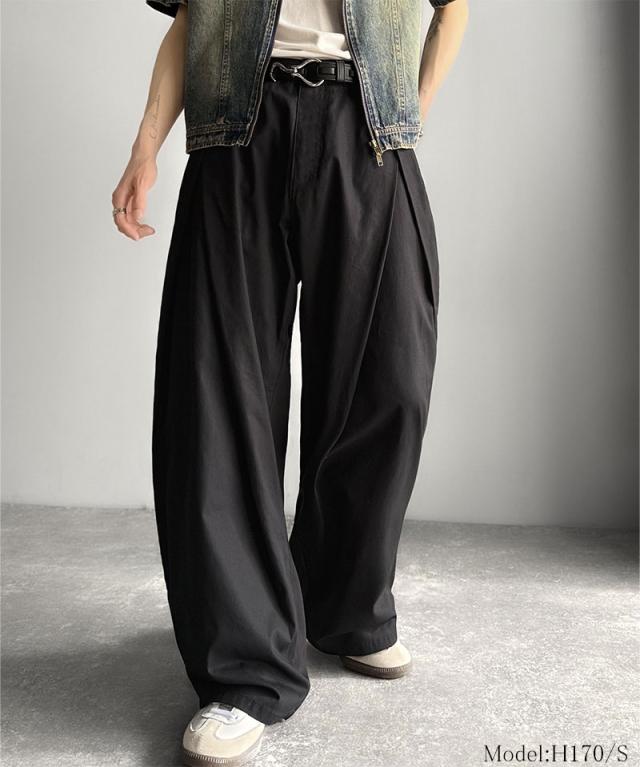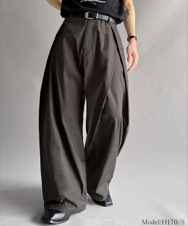 クラシカルエルフ秋新作 Haruto×クラシカルエルフコラボ Classical origin ボトムス パンツ メンズ 綿100% ダブルタック デザイン バック ポケット ワイド スラックス / Double Tuck Design Back Pocket Wide Slacks 大きいサイズ 2025ss co1010015