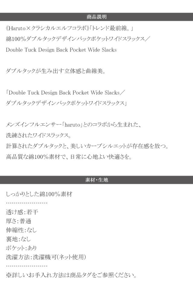 ★《Haruto×クラシカルエルフコラボ》「トレンド最前線。」綿100%ダブルタックデザインバックポケットワイドスラックス/Double Tuck Design Back Pocket Wide Slacks★