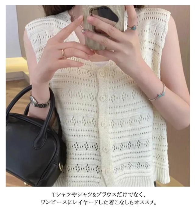 ベスト レディース サマー ベスト レディース ジレ ベスト ニット ベスト おしゃれ レディース トップス ジレ ニットベスト 春夏 ミドル丈 透かし編み ノースリーブ 夏ベスト 重ね着 可愛い 心地がいい カジュアル 薄手 通勤 通学 送料無料