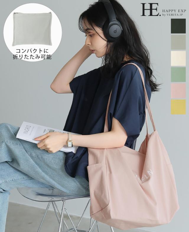 パイピング ハンドル ロゴ トートバッグ 大容量 キャンバスバッグ 軽量 折りたたみ収納 サブバッグ 通勤 マルシェ用 エコバッグ【メール便1点まで】[M便 1/1]