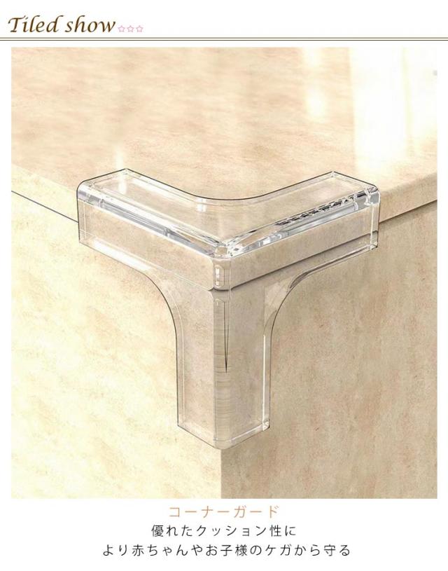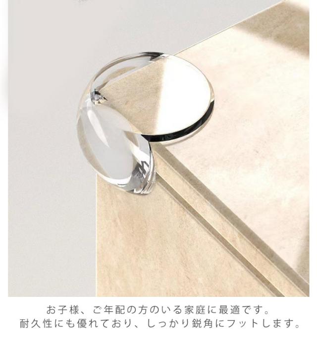 | コーナークッション 家具の角に貼りやすい 超弾力 コーナーガード 優れたクッション性により赤ちゃんやお子様のケガから守る 10個セット お子様、ご年配の方のいる家庭に最適です。 テーブル、椅子、机、棚などの危ない角をしっかりと保護し、 大切な赤ちゃんのケガを防止しましょう! 透明なのでインテリアをそこねない目立たないデザインです。 安全で柔らかい素材。 耐久性にも優れており、しっかり鋭角にフットします。 取り付けはとっても簡単。 そのまま、両面テープ取り付け可能です(粘着シール付き) | |