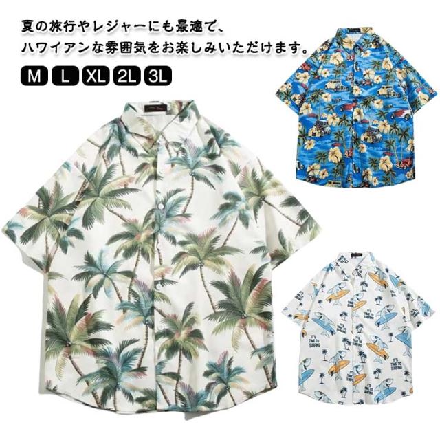 花柄シャツ 開襟シャツ アロハシャツ シャツ トップス アロハ シャツ 半袖 ハワイアン柄 大きいサイズ カジュアルシャツ サマーシャツ 涼しい 速乾 ハワイ シャツ 父の日 プレゼント メンズ リゾート 海