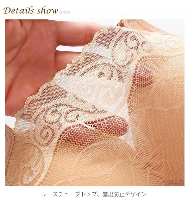 | 脇高 設計で気になるワキのハミ肉もスッキリの脇高ブラ 着痩せブラ! レースチューブトップ、露出防止デザイン 通気性があり蒸れない胸部マッサージパッド 胸より小さく見える ようにカップの膨らみは極限まで抑えながら、美しいバストラインを実現。 レース柄 、ノンワイヤーと薄いタイプなので、胸を小さく見せる効果抜群の一枚です 大きいサイズの方も安心 | |
