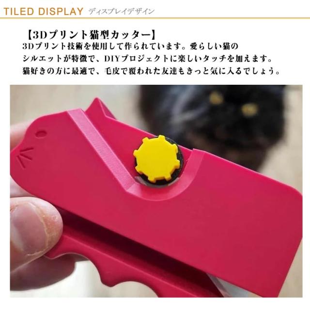| DIY猫の爪研ぎ用段ボールカッター。 【猫の外観デザイン】家の装飾として、猫を愛する雰囲気を念頭に置いてデザインされた猫スクラッチャー用の創造的でかわいい段ボールカッターで、あなたの生活空間に暖かさと楽しさを加えてください。 【3Dプリント猫型カッター】3Dプリント技術を使用して作られています。愛らしい猫のシルエットが特徴で、DIYプロジェクトに楽しいタッチを加えます。猫好きの方に最適で、毛皮で覆われた友達もきっと気に入るでしょう。 【段ボールをDIY】カッターでゴミを遊びに変えましょう。このツールは、段ボールを楽しいおもちゃやスクラッチャーにリサイクルするのに最適です。ペットを楽しませながら、自分で段ボールのスクラッチャーを作ることで、段ボールのスクラッチャーにかかる費用を節約できます。 【コンパクトで便利】保管や持ち運びが簡単です。熟練した職人にも初心者にも最適で、DIYプロジェクトやプロの使用における段ボールの切断ニーズをすべて満たします。安全ブレードガードが装備されており、誤って指を切るのを防ぎ、使用中に安心していただけます。 【幅広い用途】段ボールを再利用して、ユニークな手作りの猫用爪とぎポスト、ガーデンマット、堆肥材料、クリエイティブな手作りの猫用ベッド、キャットツリー、その他のペット用家具を作ることができます。 | |