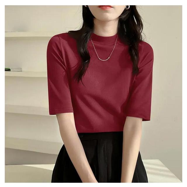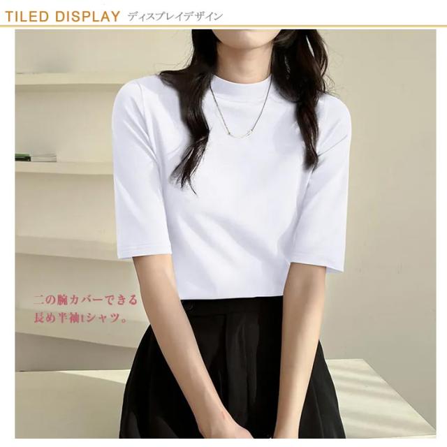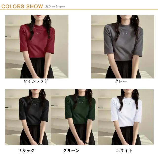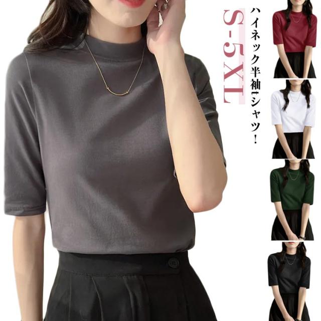 半袖Tシャツ トップス ハイネック モックネック 春 レディース カジュアル 半袖tシャツ 5分袖 夏 tシャツ 半袖Tシャツ トップス ストレッチ スリム 大きいサイズ プルオーバー 無地 オフィス