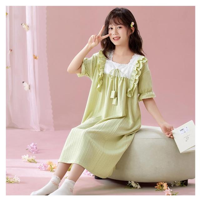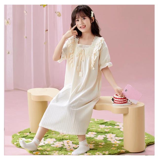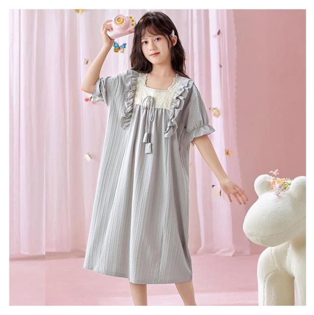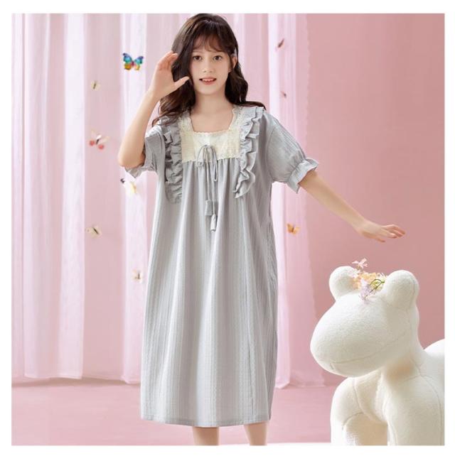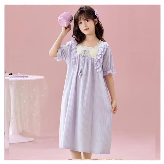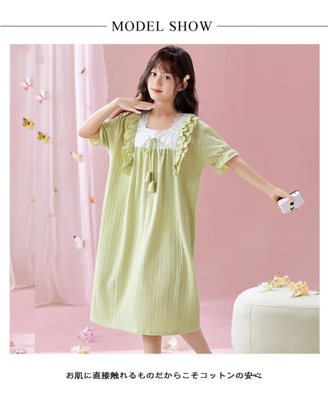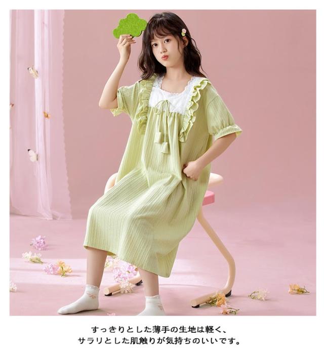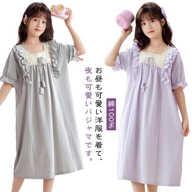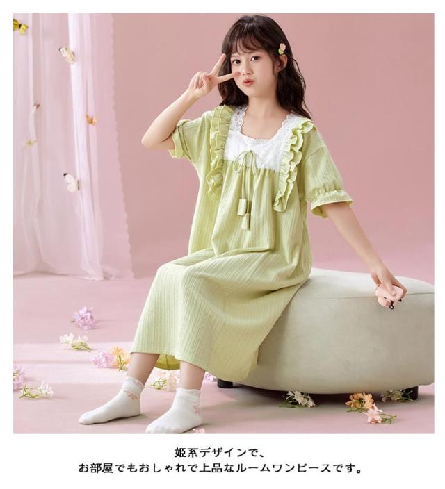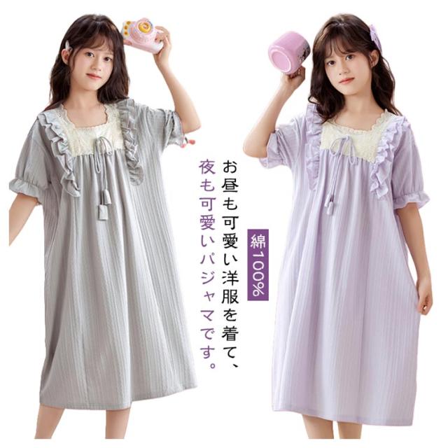綿100% 春夏 ルームウェア キッズ ワンピース 半袖 女児 子供服 パジャマ パジャマ 女の子 プリンセス ルームワンピース ナイトドレス 部屋着 寝間着 寝巻き 姫系 可愛い