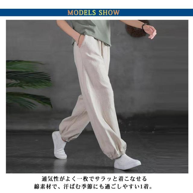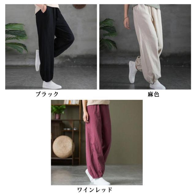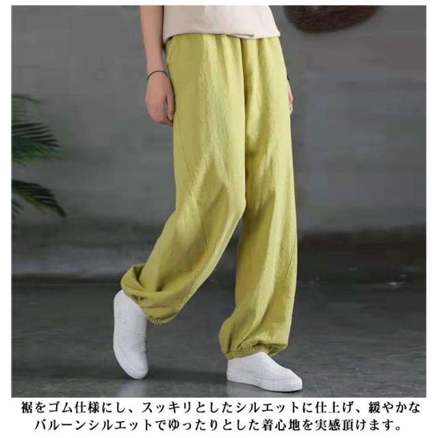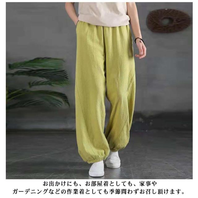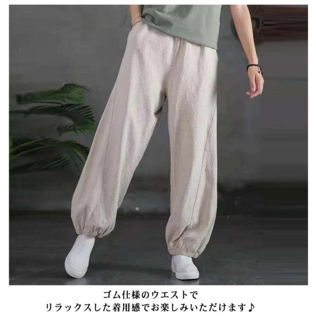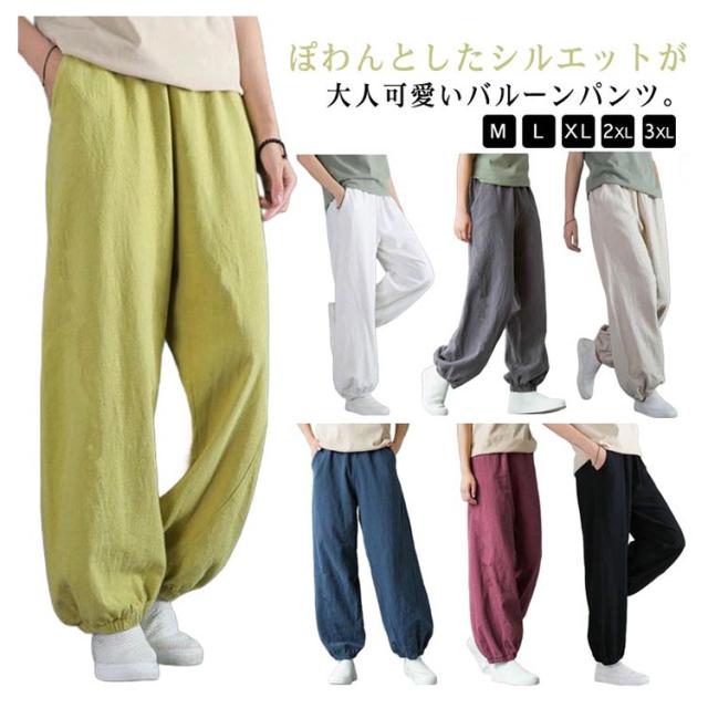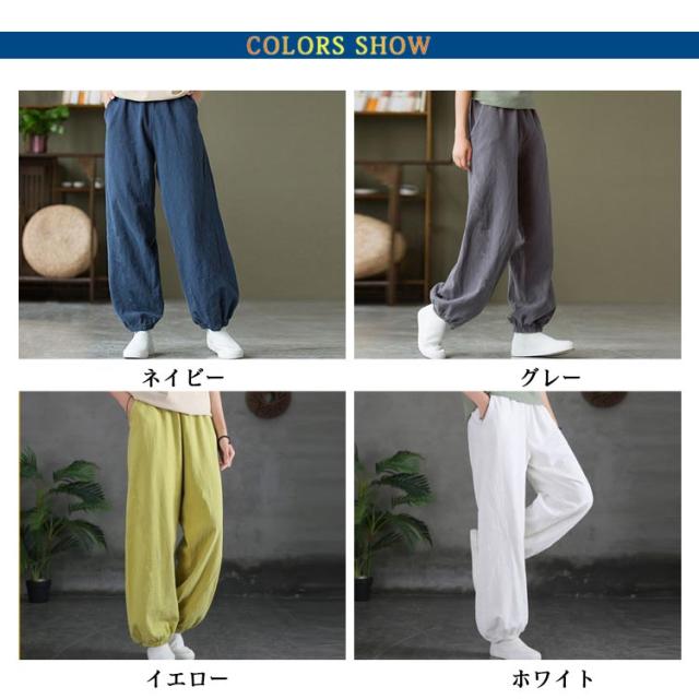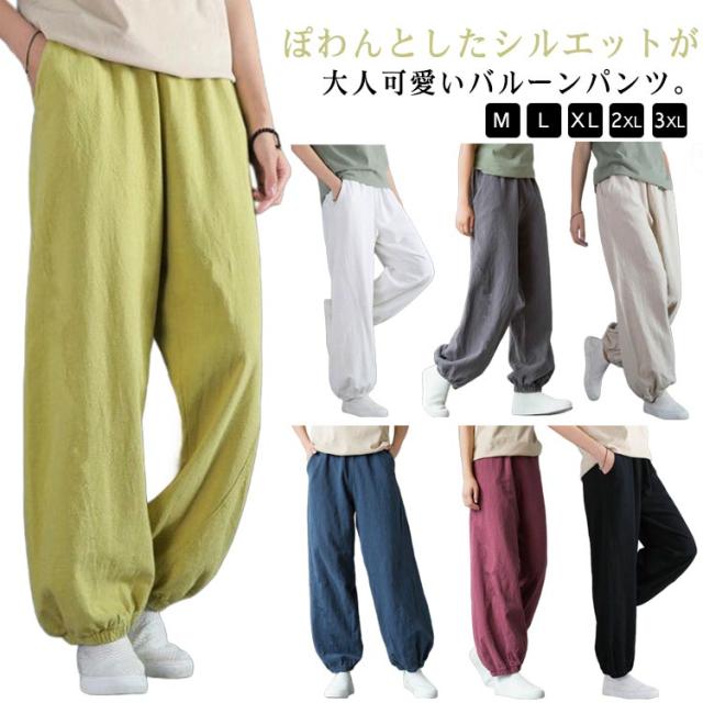 夏 レディース イージーパンツ リラックスパンツ ロングパンツ バルーンパンツ カラーパンツ ゆったり 綿 夏 コットン リネン調パンツ 涼しい 薄手 通気性 部屋着 ウエストゴム ポケット付き 無地 大きいサイズ 春 バルーンパンツ 美脚 おしゃれ