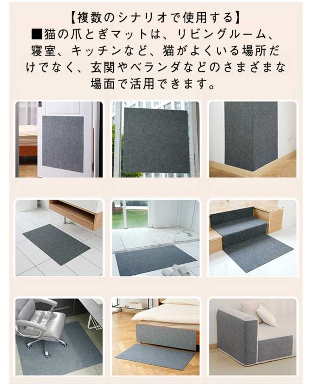 | 【多機能】 ■ソファーやベッドなどの家具を保護できます。 ■壁に貼り、高所に上らせることができます。 ■床に貼り付け、敷きマット代わりに使用できます。 【高品質】 ■優秀な耐摩耗性を備え、引っ掻きに強い。 ■裏には粘着力のテープ付き、しっかりくっつきます。 【使用便利】 ■自由に切り取りできます。 ■裏にテープ付き、剥がして貼るだけで便利です。 【複数のシナリオで使用する】 ■猫の爪とぎマットは、リビングルーム、寝室、キッチンなど、猫がよくいる場所だけでなく、玄関やベランダなどのさまざまな場面で活用できます。 | |