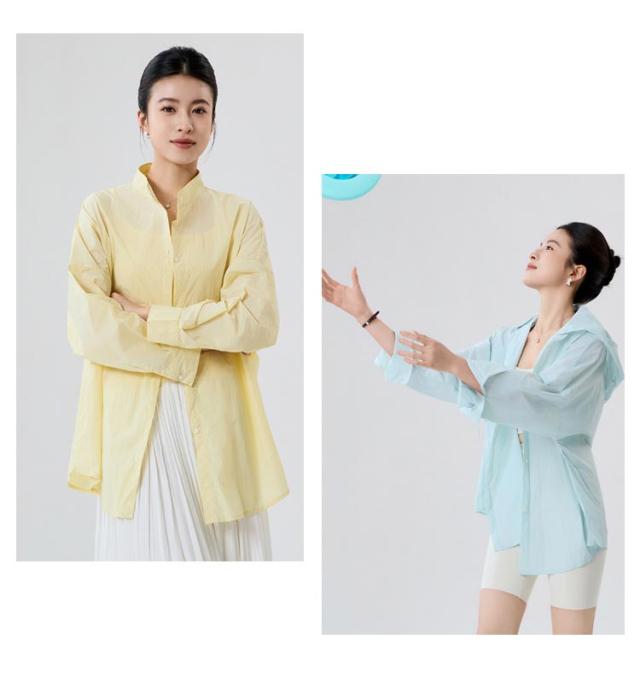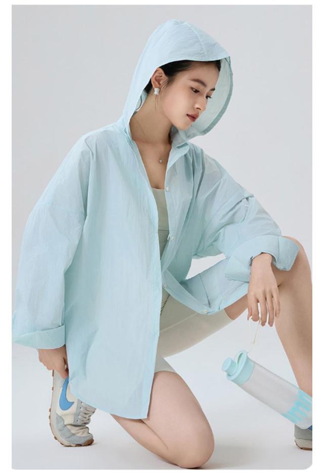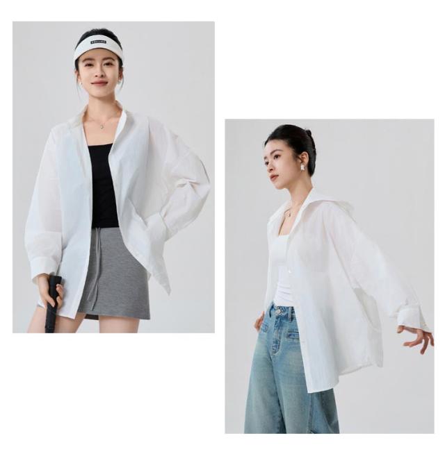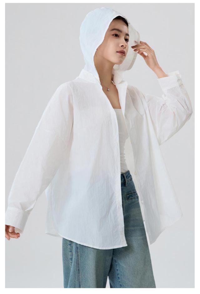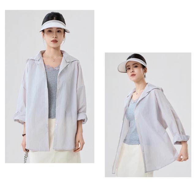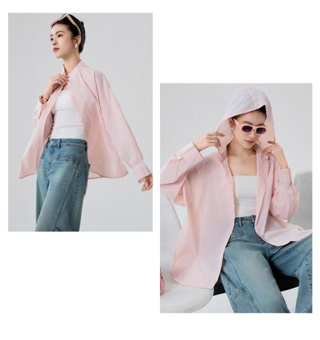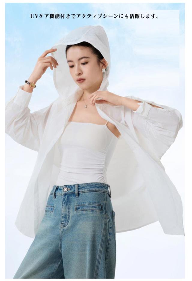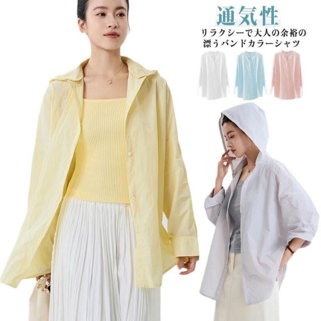 普段着 ラッシュガードシャツ 2way 取り外し可能 シアーバンドカラーシャツ フード付き シアーバンドカラーシャツ オーバーサイズ バンドカラー 通気性 蒸れない トップス シャツ 長袖 ブラウス UPF50+ 海 無地 薄手 吸汗 体型カバー レジャー
