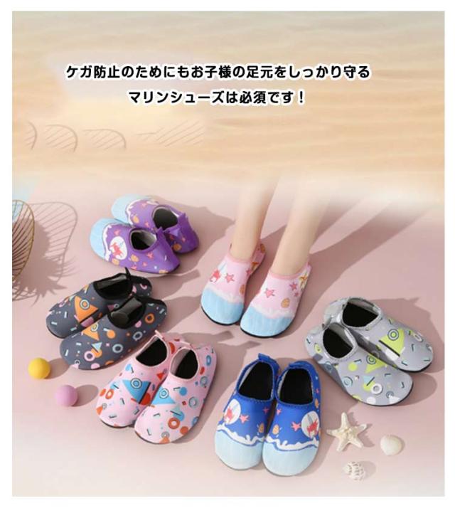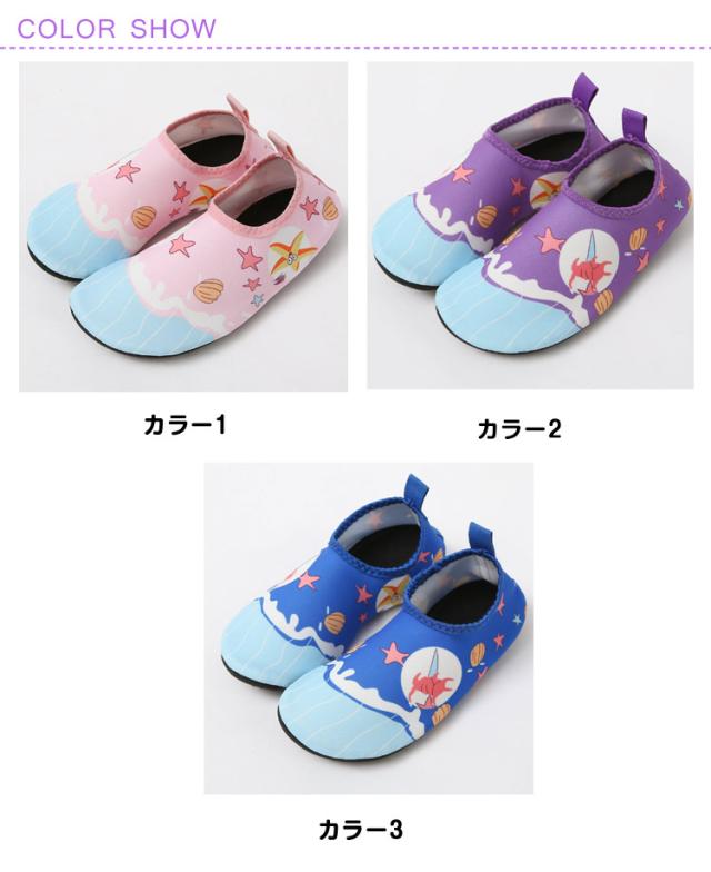 | 全6色、海や川遊び、プールや水遊びなど夏のレジャーに欠かせないマリンシューズ! 浜辺やビーチサイドは砂や砂利、ガラスやプラスチック片などが落ちている可能性もあり、裸足のままでは危険もいっぱい! ケガ防止のためにもお子様の足元をしっかり守るマリンシューズは必須です! | |