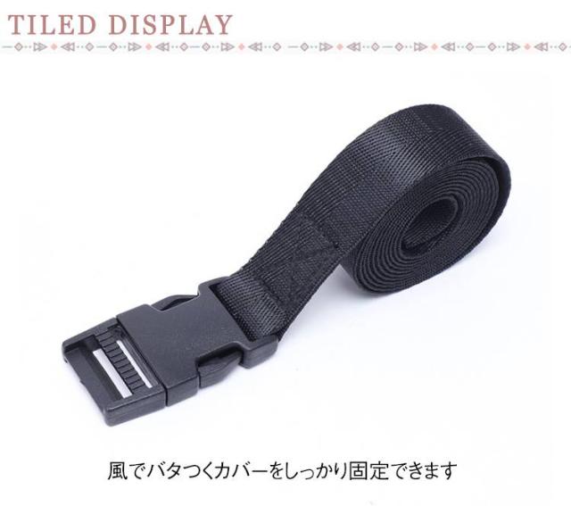| 5本 自転車カバー/バイクカバー用 ベタつき防止ベルト 3m 風でバタつくカバーをしっかり固定できます ベルトをぐるりと回しバックル装着でしっかり固定 | |